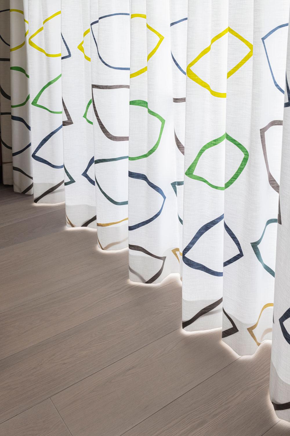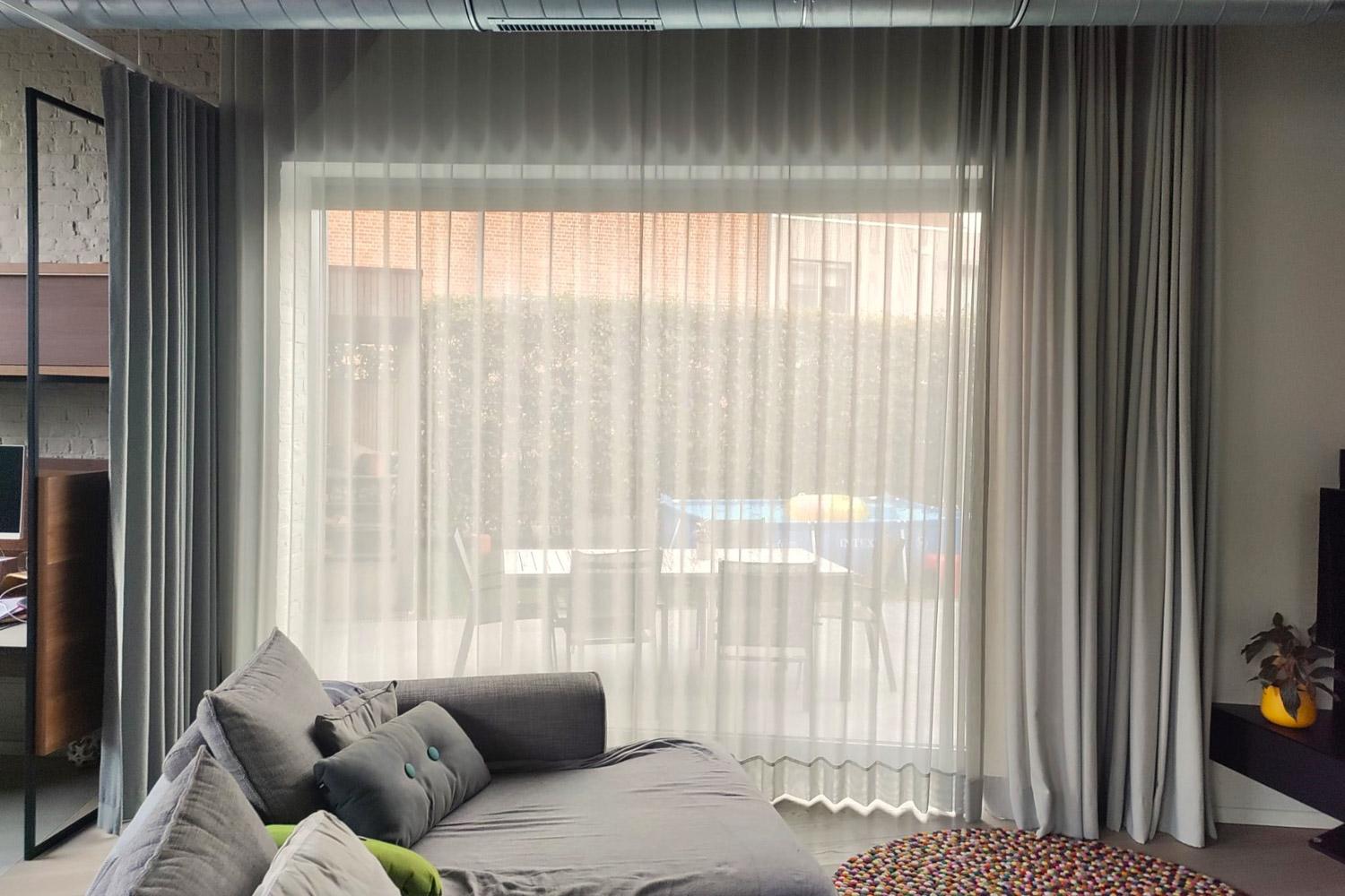 Alle overgordijnen functioneren elektrisch. Op ons advies werd de juiste bedrading en positie van de elektriciteit voorzien.