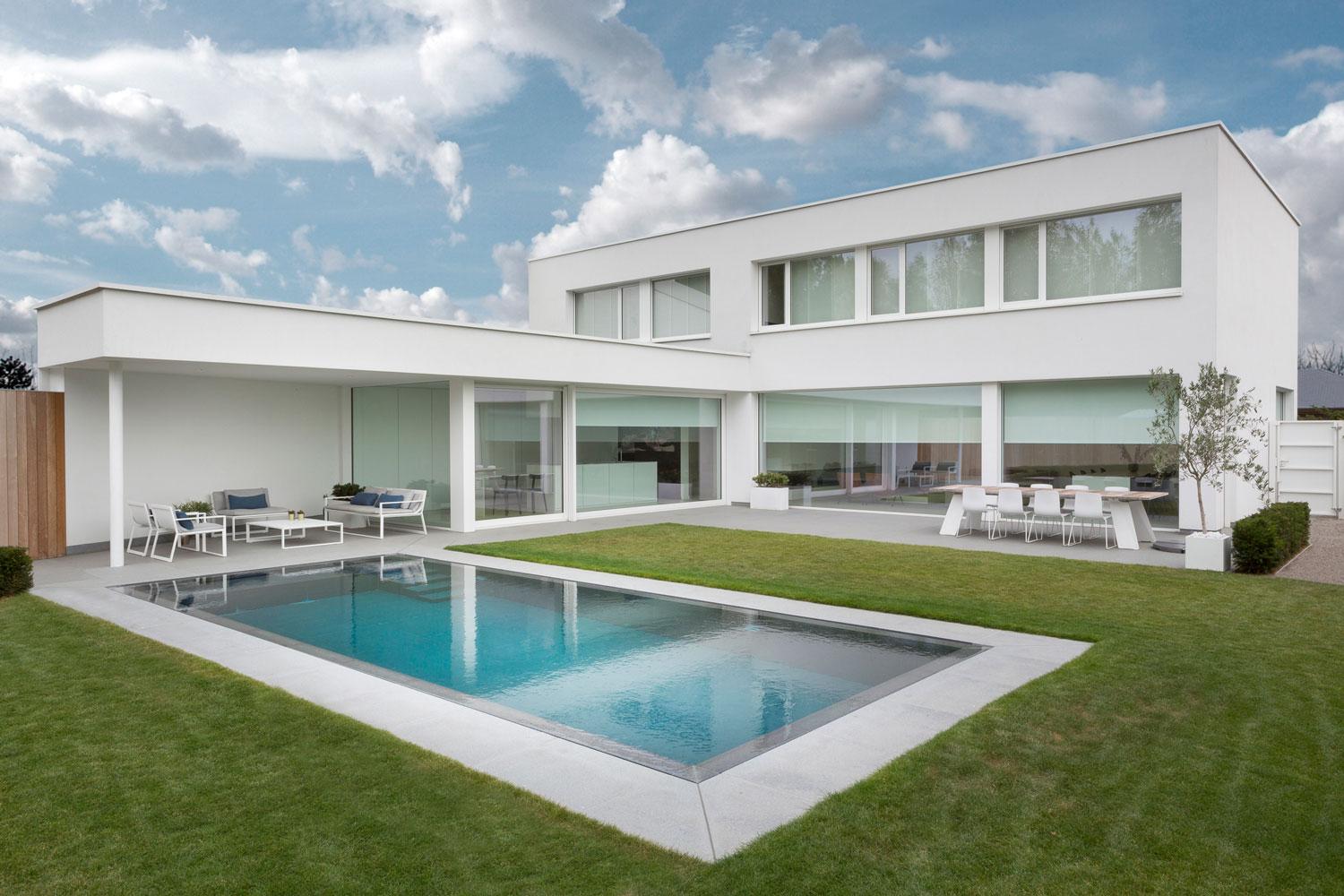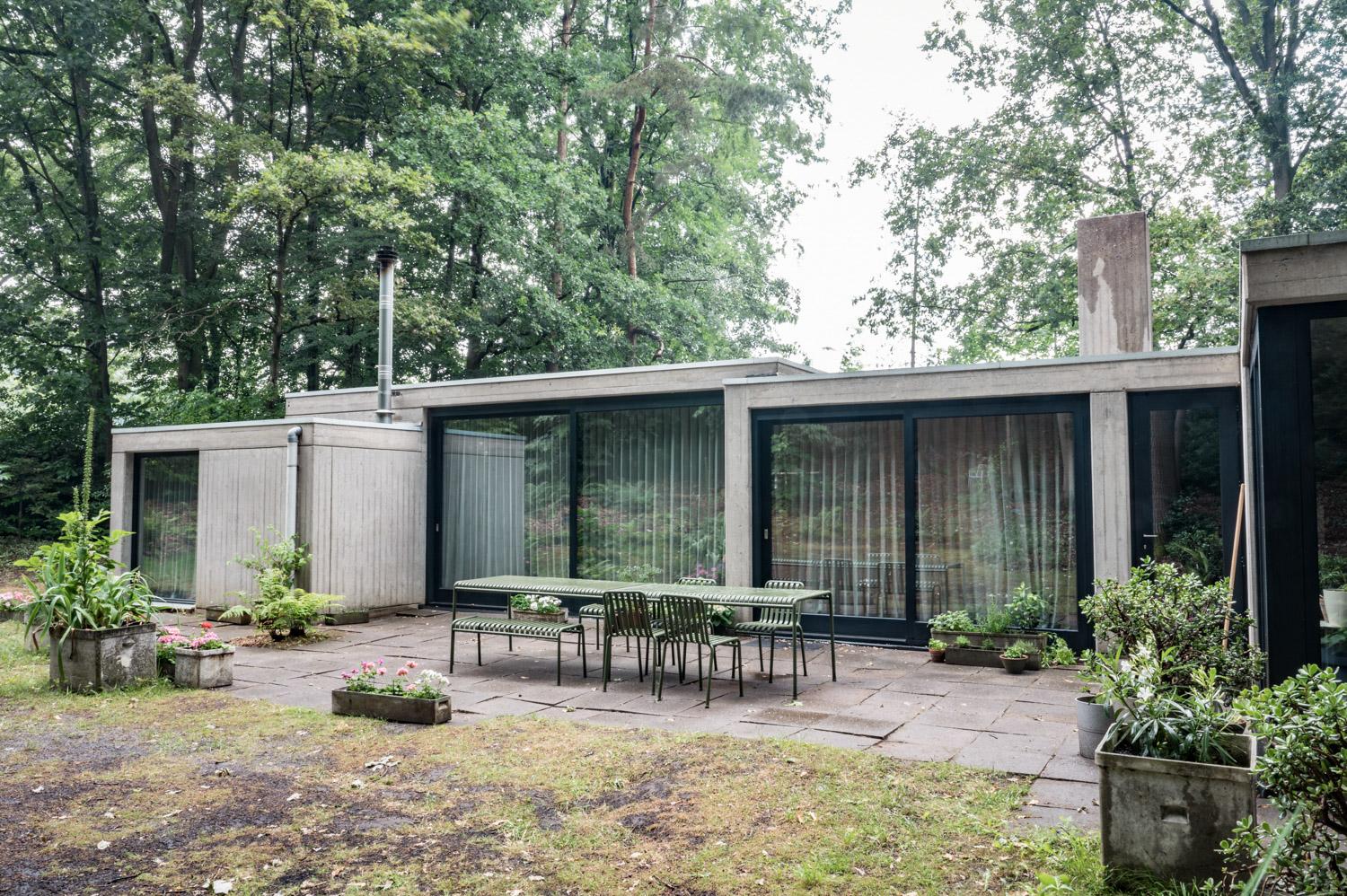 Deze villa, een ontwerp van architect Stéphane Beel, is een mooi voorbeeld van modernistische architectuur. Het rechthoekige volume is gebouwd rond een patio en heeft een quasi gesloten voorgevel. Het is perfect ingepland in de bosrijke omgeving.